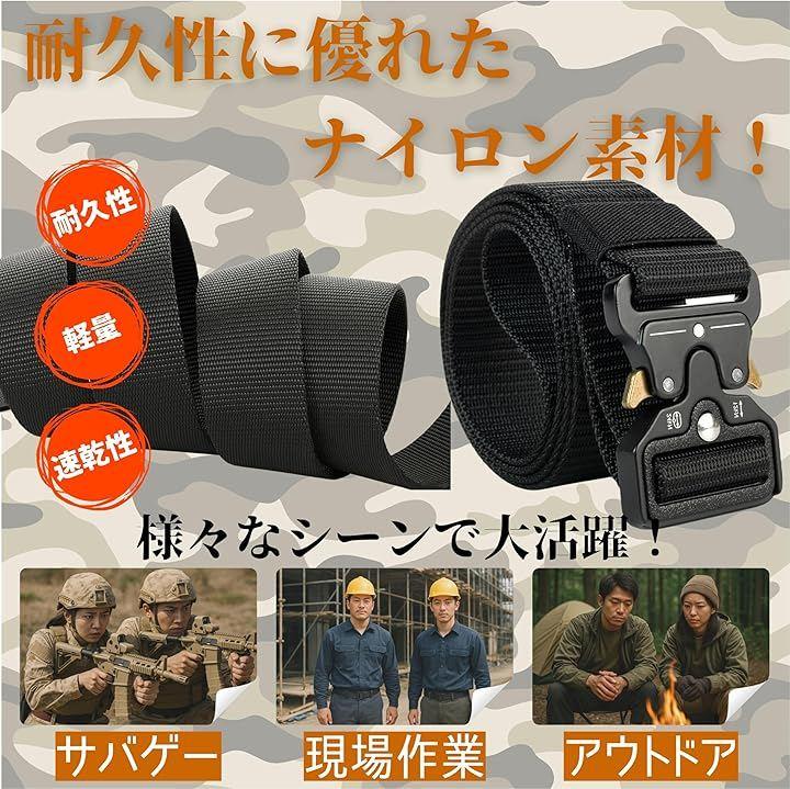 「製品仕様」 ・ベルト全長:約130cm(サイズ調整可能) ・ベルト幅:約3.8cm ・素材:高強度ナイロン/軽量樹脂バックル ・重量:約78g ・対象:メンズ/レディース/ユニセックス 過酷な現場、アウトドア、サバゲーに欠かせない、頼れるタクティカルベルト。