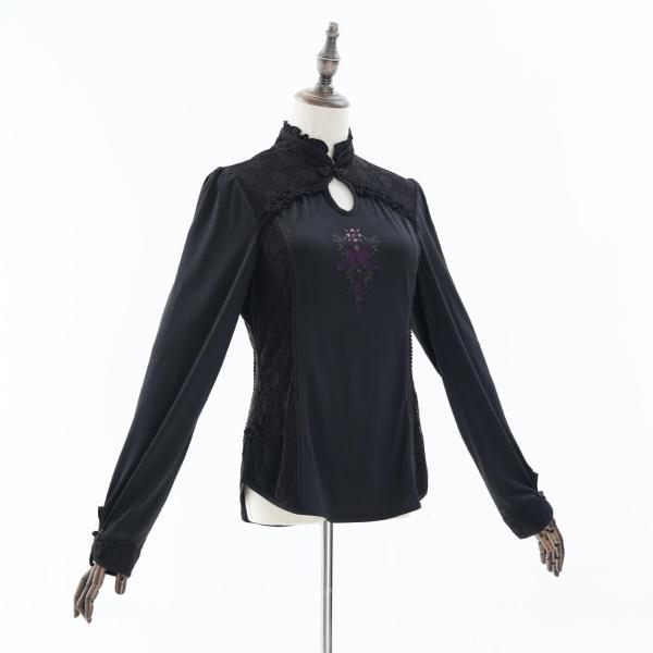 繊細なレースを重ねたチャイナカットソー。やわらかなカットソー生地の上にレースを重ねることで、奥行きのある陰影が生まれます。胸元の刺繍とチャイナ釦が印象的で、素肌に溶け込むような透け感が上品。袖口にはレースが揺れ、軽やかな透け感が手元を美しく見せてくれます。伸縮性のある生地で着心地も良く、インナーとしても主役としても活躍できる一枚。