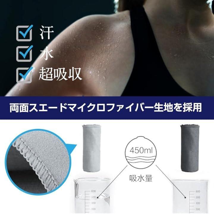 「驚きの吸収力&速乾性で快適に」 両面スエードマイクロファイバー素材を採用し、汗や水分をすばやく吸収。