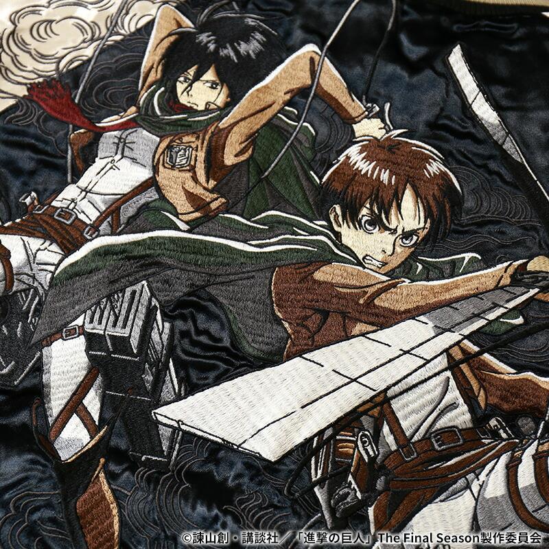 調査兵団 エレン × ミカサ & 超大型巨人 刺繍 リバーシブル スカジャン