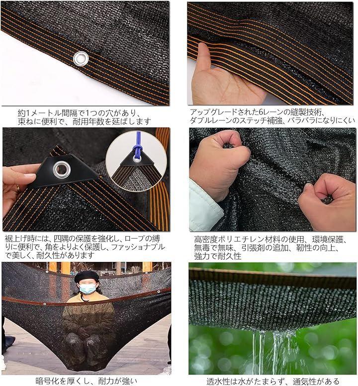 サンシェードネットの四隅には三角形の保護コーナーがあり、1mごとに両側にグロメットがあります。