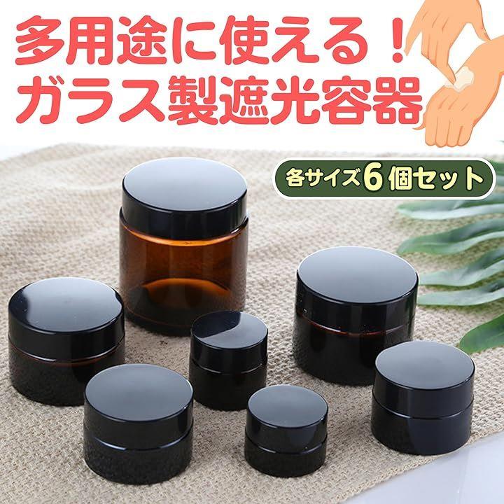 この遮光ガラス製クリームジャー6個セットは、ハンドクリームやアロマクリームの保存・詰め替えに最適で、しっかり密閉できる内蓋付きです。