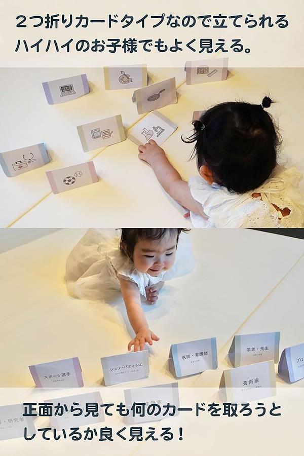 1歳になるとハイハイしたり歩いたりすることができるので、自分で上手にカードを選ぶ姿を、写真や動画で記念に残すことが出来ます。