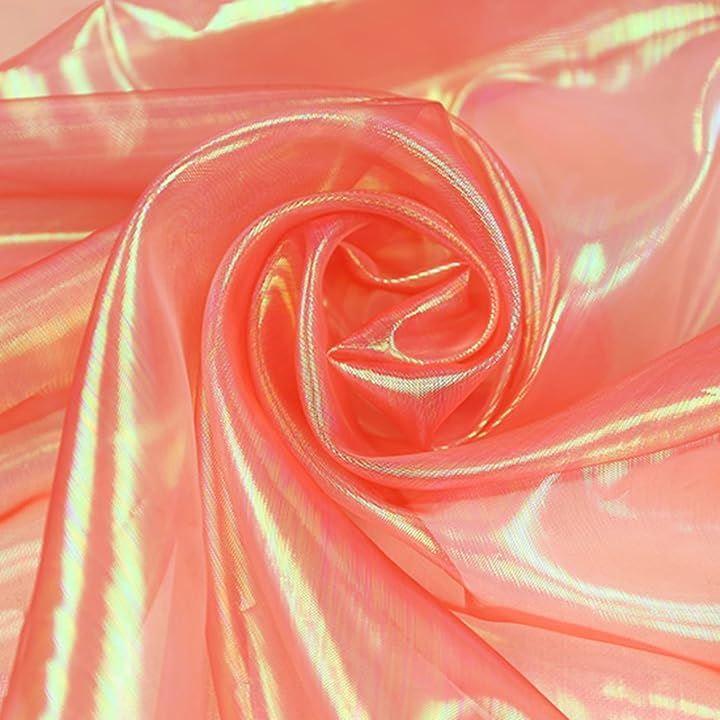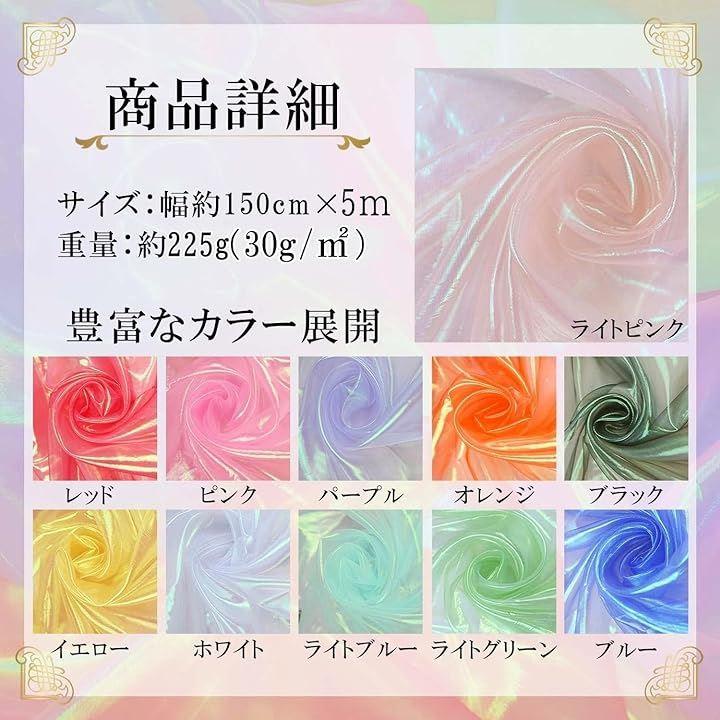 ・美しいオーロラのように、見る角度によって変化する光沢感が魅力の、透明度の高いオーガンジー生地です。