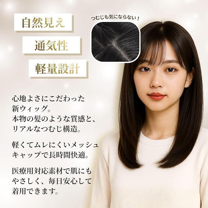 前髪付きデザインで顔まわりをやさしく包み込み、若々しく自然な印象を演出します。