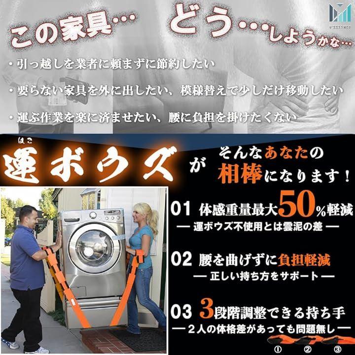 あなたの運びたい。をラクに叶える2人用ハンドストラップ型運搬ベルト重くて持ちにくい物を運ぶために2人で使用します。