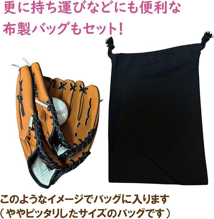 サイズボール直径約7cm 子供用約10.5インチ:約14x13x23cm・大人用約12.5インチ:約19x13x31cmx各1個(どちらも左手に装着・右投げ用) 材質/PVC 黒の布製袋付き(持ち運びやすいようにピッタリとしたサイズの布袋です)