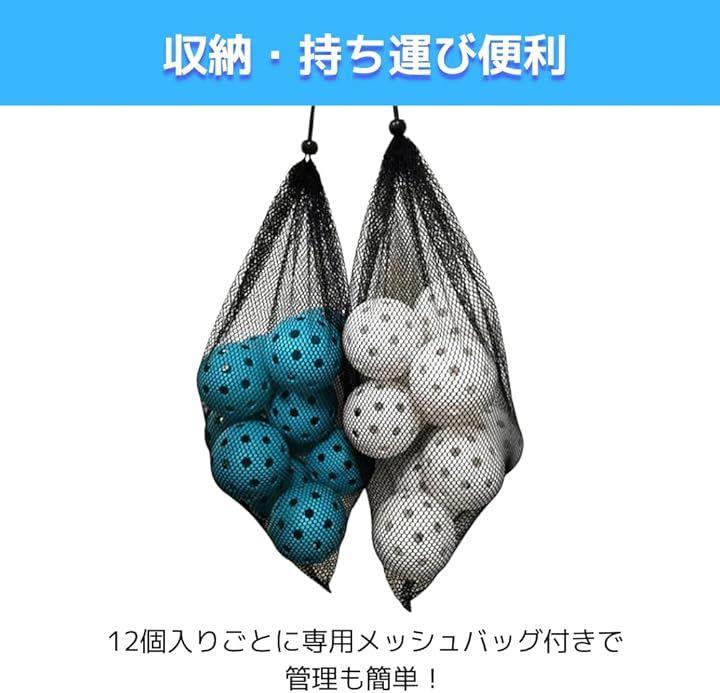 「収納・持ち運び便利」12個入りごとに専用メッシュバッグ付きで管理も簡単。