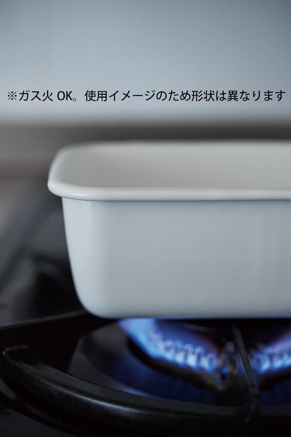 商品紹介「ホワイトシリーズ スクウェアL 琺瑯蓋付」は、表面にガラス質を使用し、食材や料理の風味と質を変化させにくい保存容器です。においの強い食材を入れても、においが移りにくいので安心。食品の冷凍が可能です。本体を直接火にかけて温めることができます。直火、オーブンでの使用が可能です。熱伝導率がよく、保温性はもちろん、冷却性にも優れています。酸や塩分に強いので、漬物、梅干し、ジャムなどの保存にも適しています。