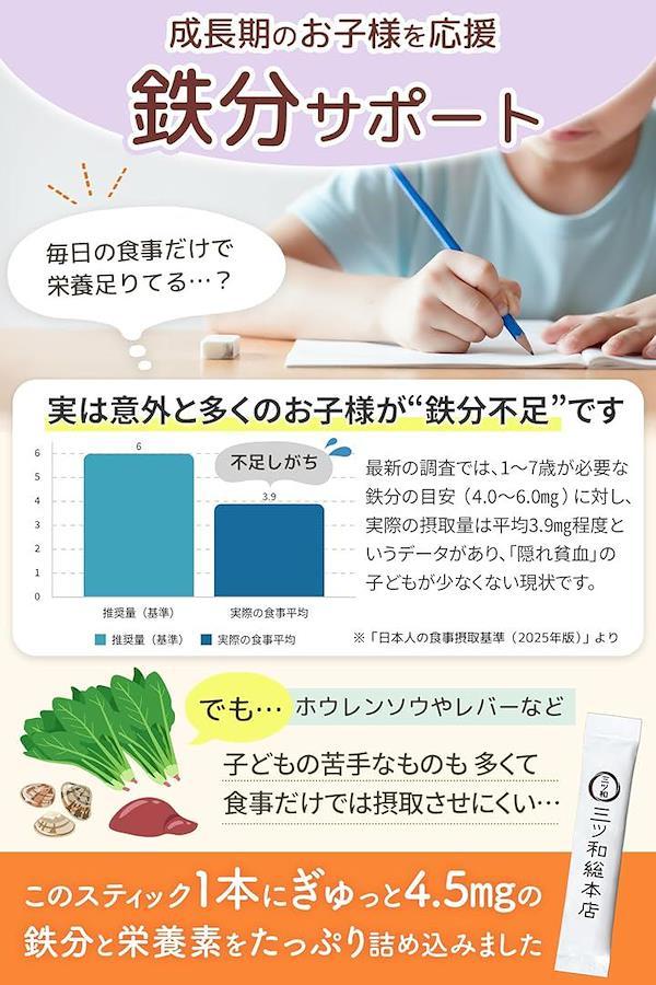 「不足しがちな鉄分を1本で1日分をケア」成長期の子どもは鉄分が摂りにくいと言われています。
