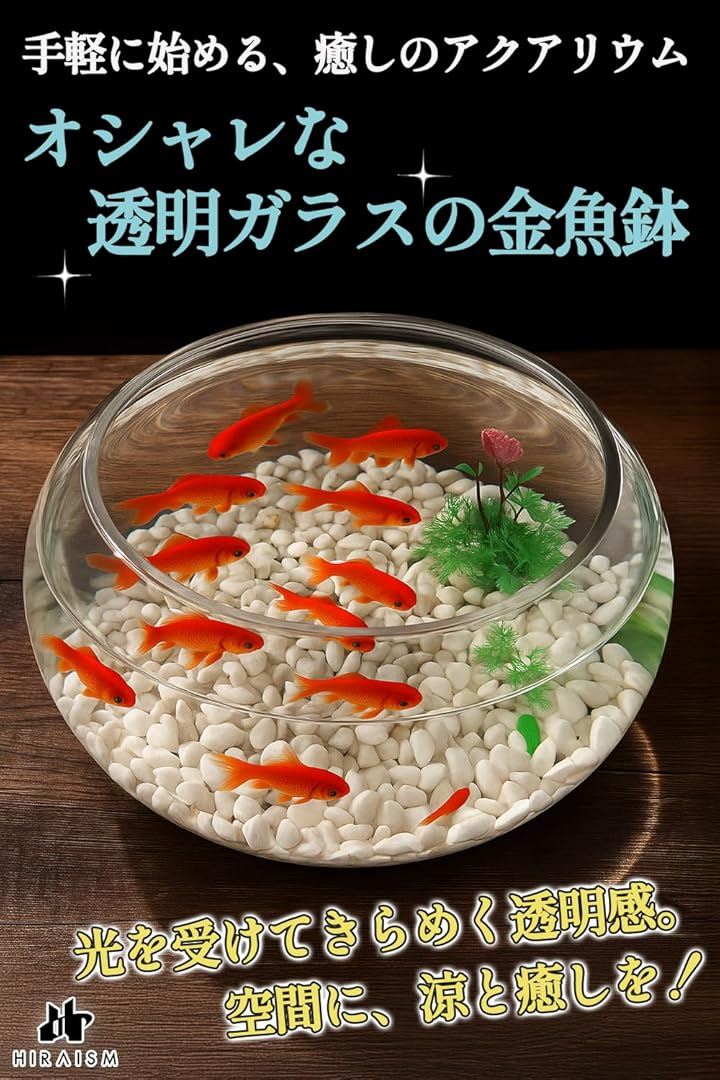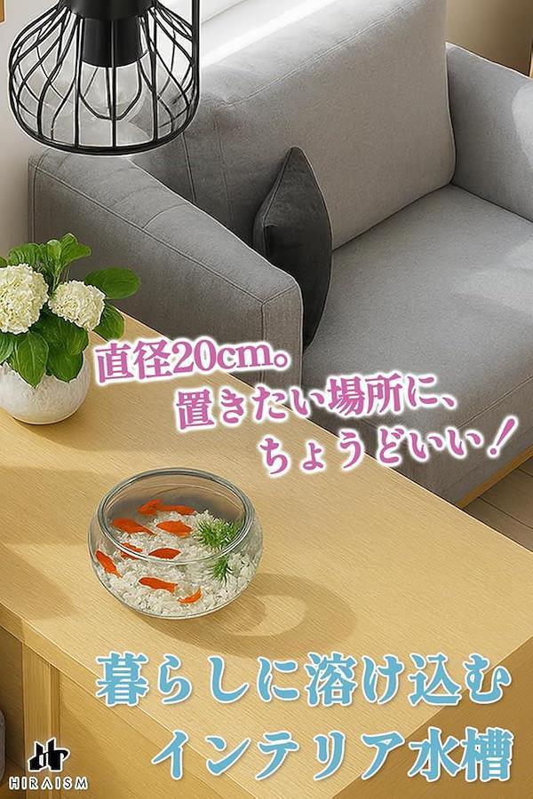「初めてのアクアリウムにオシャレな透明ガラスの金魚鉢」直径20cmのちょうど良いサイズで、大きな水槽を準備しなくても手軽にアクアリウムを始められます。