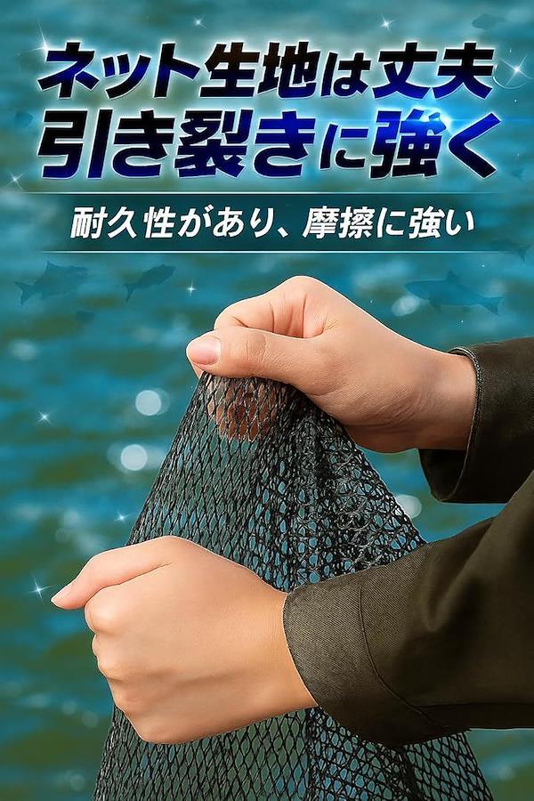 「細かい目網で小魚も逃がさない」約1cmの細かい網目が、小さな魚の逃げ出しを防止。