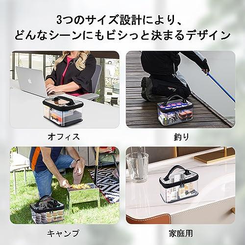 通常1-5営業日で発送:Sのサイズ:幅21.5cm x 深さ14.5cm x 奥行9cm 容量:2.7LMのサイズ:幅24cm x 深さ16.5cm x 奥行11cm 容量:4.3LLのサイズ:幅27cm x 深さ19cm x 奥行12cm 容量:6.1L便利:釣りバッカンは、ルアーなどの小物を入れるのに便利で、透明なので、中に何が入っているかわかりやすいです大容量:釣り用タックルボックスが3つあり、合計容量は約13Lで、釣り小物をよりよく保管できます。多機能:軽量、コンパクト、折りたたみ式のタックルボックスは、釣り場まで歩いてライン、ターミナルタックル、ルアーなどの釣り道具を運ぶときに便利です。 釣りだけでなく、屋外や災害時にも使用できます。 コンパクトなボックスは釣りゲームに便利です!