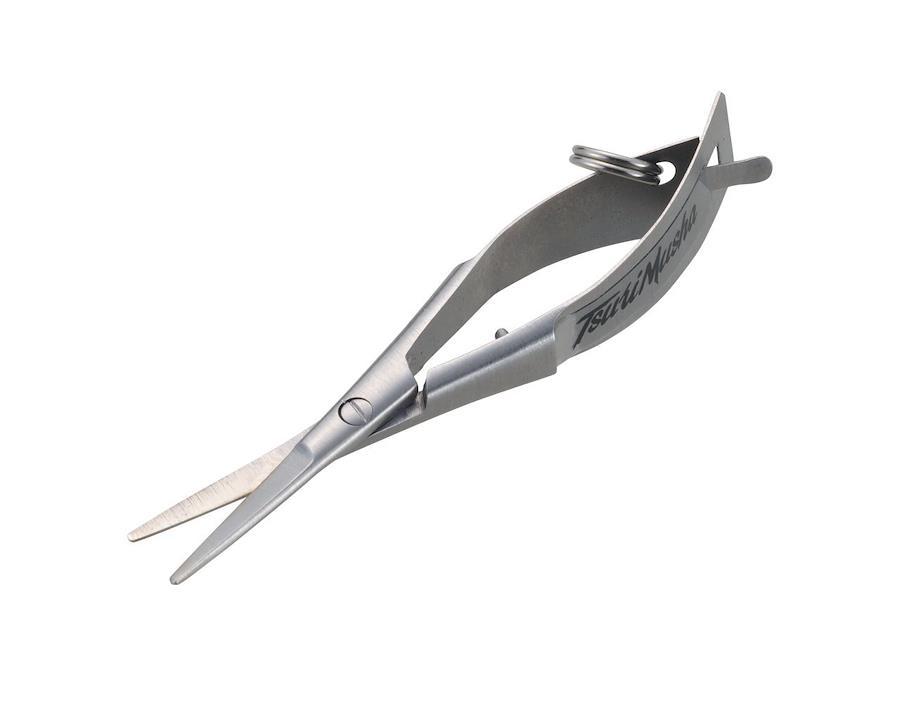 ハリスや結束後の余った糸のカットに便利な「キリキレハサミ」。通常のハサミと違い、ホルダーから外すと、刃が開いた状態になるのでラインカッター感覚で使えるハサミです。