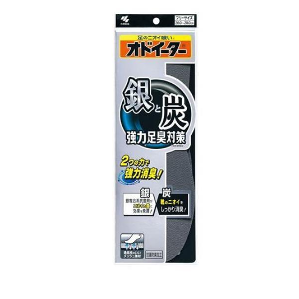 製品の特徴●銀と炭がダブルに働き強力(※)消臭!●「銀」ニオイの菌に効果を発揮。銀複合系抗菌剤がニオイの菌に対応。●「炭」靴のニオイもしっかり消臭。炭に空いている無数の小さな穴がニオイ成分を吸着。●「吸汗効果・通気性」クッション部のフォームラバー層が汗を吸収。通気性にも優れ、靴の中はいつもサラサラで快適。●「クッション効果」フォームラバー層はクッション性に優れているため、足と靴をフィットさせるとともに足の疲れを軽減します。●フリーサイズ(20.0~28.0cm)