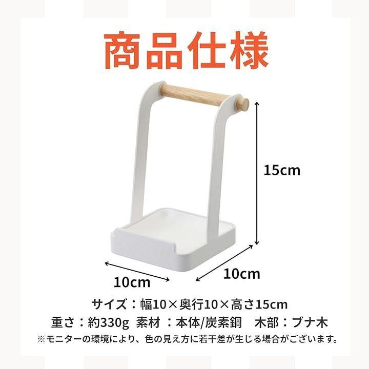 「なべぶたスタンド 仕様」 *サイズ:幅10x奥行10x高さ15cm *重さ:約330グラム *素材 :本体/炭素鋼 木部:ブナ木 *モニターの環境により、色の見え方に若干差が生じる場合がございます。
