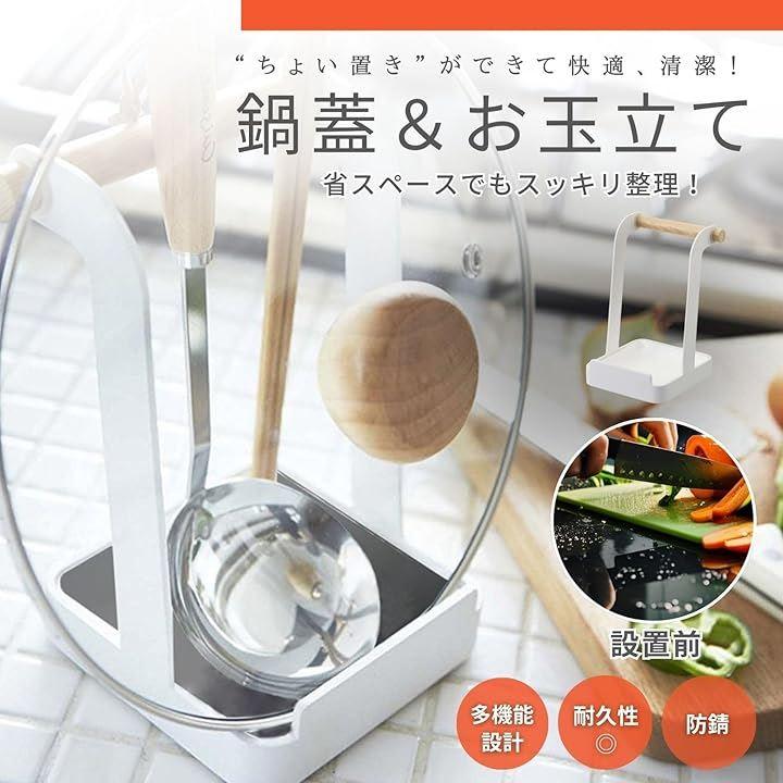 鍋蓋とお玉を立てて収納でき、狭いスペースでもスッキリと整理できます。