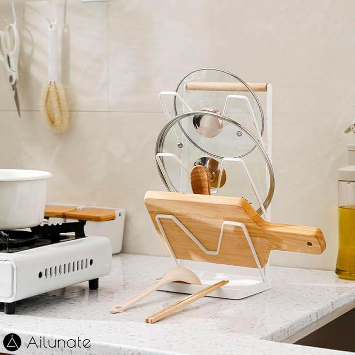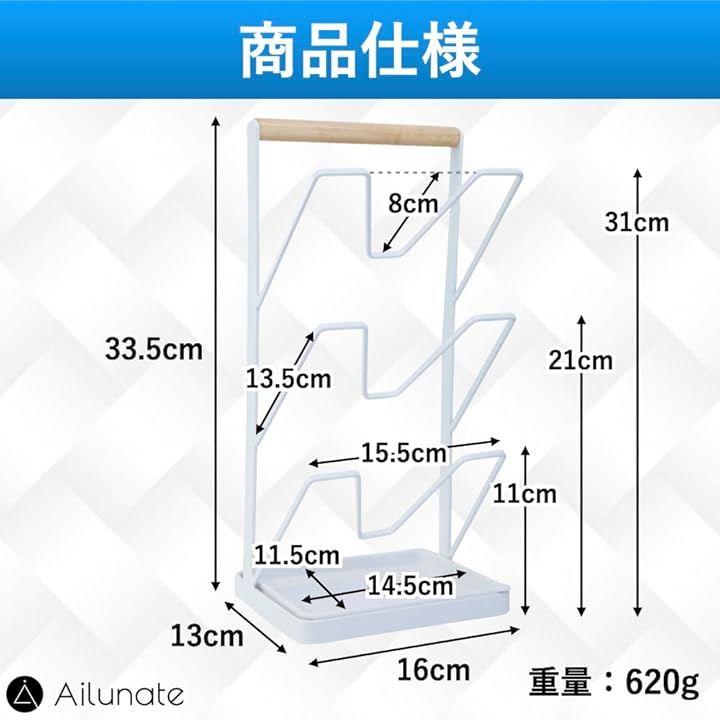 3段ラックとなっており、鍋の蓋やお玉置き、まな板ホルダー、菜箸置きとしてもご使用頂けます。