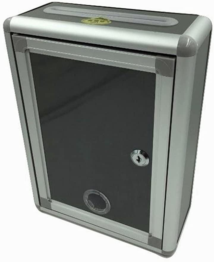 ・サイズ:幅:25cmタイプ(奥行:11.5cm 高さ:32cm 投入口サイズ :135mm x5mm 重量:728g) 材質:アルミ プラスチック等 付属品:鍵x2本 壁設置用ネジ2本 プラグ2本