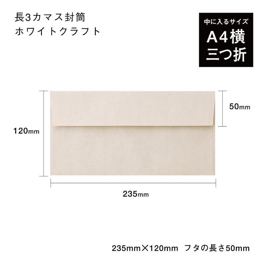 長3 カマス 封筒 ホワイト クラフト 100枚入 ( A4 横三つ折 が入るサイズ)