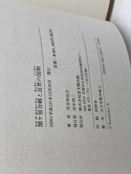 商品名:関ヶ原合戦と近世の国制 思文閣出版 笠谷 和比古