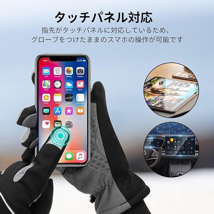 「タッチパネル対応」指先がタッチパネルに対応しているため、グローブをつけたままのスマホの操作が可能です。
