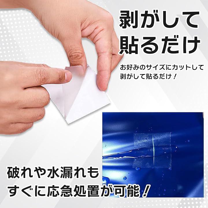 プールやビニールプールの水漏れ補修、ビニールシートの破れ補修、雨漏り対策など、多用途に使える便利アイテム。