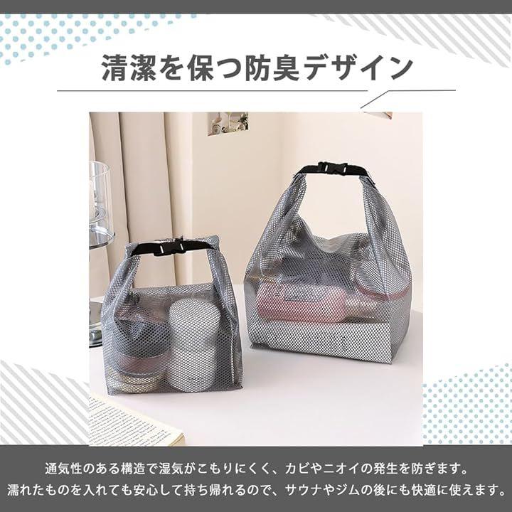 濡れた服やタオルを分けて収納できるので、サウナやプール、温泉のお供に最適です。