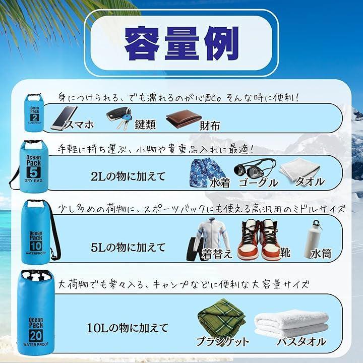 「サイズ・カラー」サイズは2L/5L/10L/15L/20Lとコンパクトから大容量まで幅広く取り揃えていますので、荷物の量や使用シーンに合わせてお選びください。