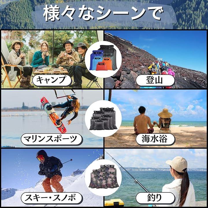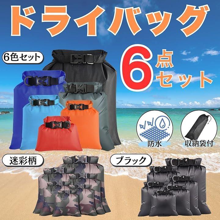 「多用途」様々なアウトドアアクティビティに対応する防水ドライバッグ6枚セット。