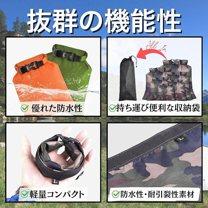 この防水ドライバッグセットは、アウトドアアクティビティの際に荷物を守る最適な選択肢です。