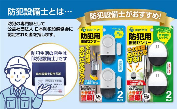 日本防犯設備協会認定の防犯設備士監修 窓、扉など開閉感知用の防犯センサーです。