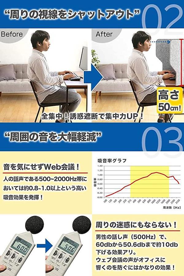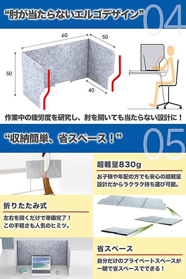 ・「デスクより少し小柄な設計」一般的なデスク机のサイズ ( 幅60cm x 奥行50cm ) に設置しやすいサイズのパーテーション。