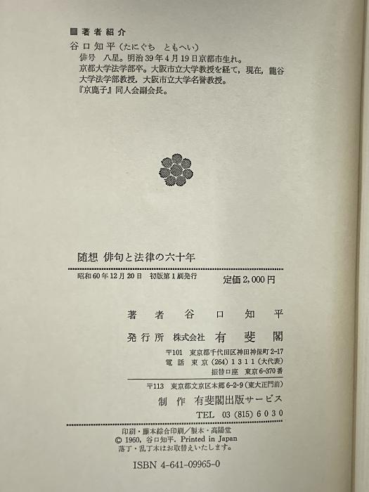 商品名:随想俳句と法律の六十年 有斐閣 谷口 知平