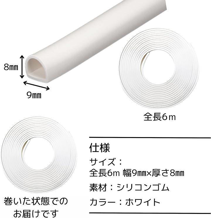 「仕様」サイズ:全長6m 幅9mmx厚さ8mm 素材:シリコンゴム カラー:ホワイト