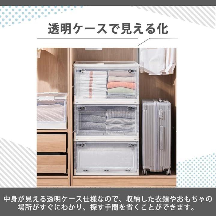 「透明ケースで見える化」 中身が見える透明ケース仕様なので、収納した衣類やおもちゃの場所がすぐにわかり、探す手間を省くことができます。