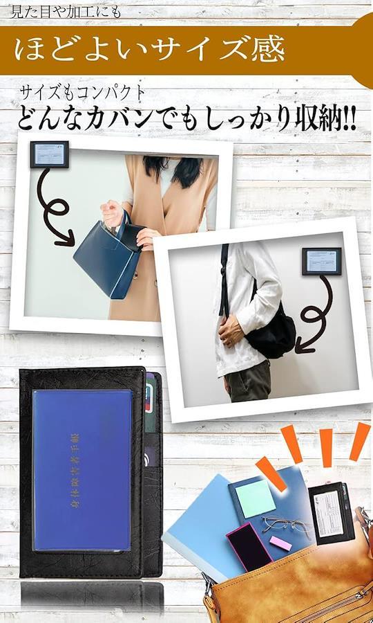 「サイズ」14cm x 10cm(窓枠:10.6cm x 6.8cm)、重さ28gのコンパクトサイズですが、各自治体の障害者手帳サイズ対応。