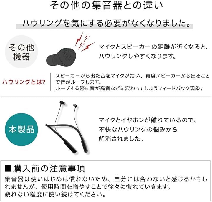 長時間の使用でも疲れにくい設計で、音量増幅だけでなく「音の明瞭さ」を向上させ、快適な会話を楽しめます。