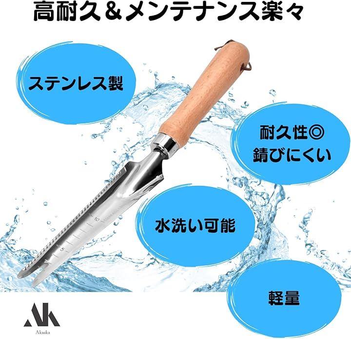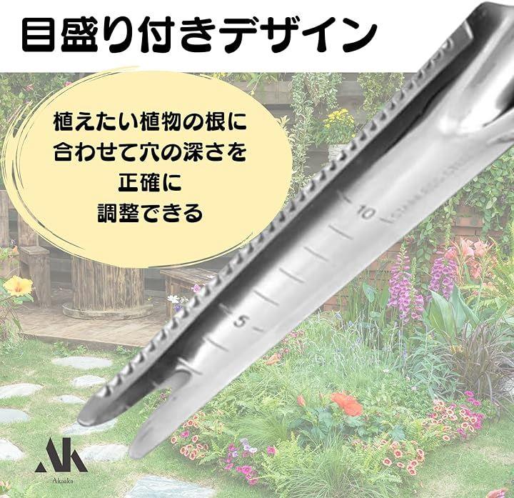 快適な使い心地と精度の高い作業 目盛り付きのデザインにより、植えたい植物の根に合わせて穴の深さを正確に調整できます。