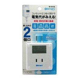 ●コンセントの電力を簡単に計測できるワットチェッカー●≪特長≫●気になる電化製品の消費電力しっかり確認。●電気代がひと目で確認できる消費電力モニター。●電気料金、消費使用電力量の情報を表示。●2ヶ口タップ型。●液晶表示内容は自動で切り替わります。●固定は出来ません。●≪仕様≫●本体サイズ:60×63×23mm●本体材料:PC樹脂●電源:AC100V(50/60Hz)●負荷接続:AC100V15A●消費電力:0.5W●測定精度範囲:10W~最大1500W(抵抗負荷)●※1200Wを超える使用は1時間以内●測定精度:5%