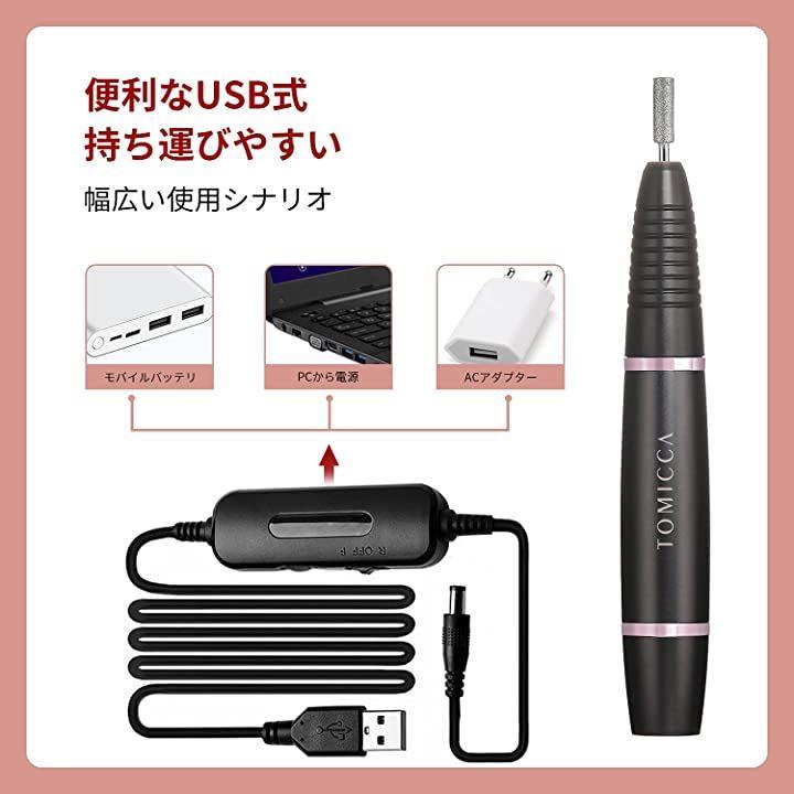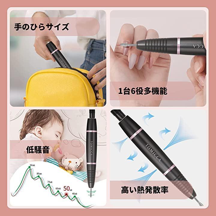 手のひらサイズ&軽量設計持ち運びしやすいデザインので、外出や旅行や出張にも持っていけて安心で便利です。パッケージ内容 付属品一覧1xネイルドリル機1xUSBケーブル1xユーザーマニュアル6xドリルビット5x研磨ヘッド