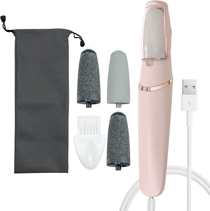 電動角質リムーバーセットには、電動角質リムーバー1個と普通ローラー2個、強力ローラー2個、充電ケーブル1個、掃除用ブラシ1個が含まれています。