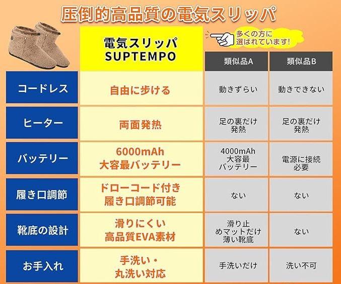 「6000mAhバッテリー2個付き」2025新版電気スリッパはDC5V/2.1A安定出力の6000mAhバッテリー2個付き、高温モードで約3.5h、中温モードで約5h、低温モードで約7.5h連続使用できます。