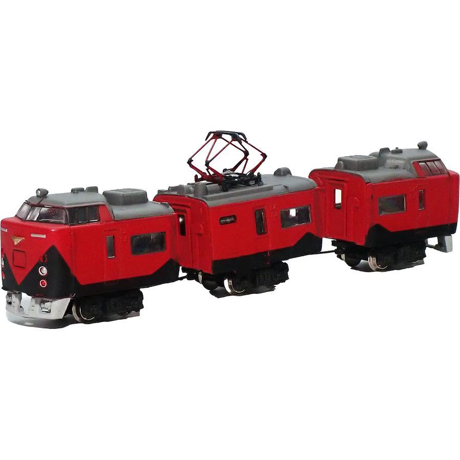 車両について:ミニミニトレイン3両連結(485系 あかべぇ編成 特急あいづ風)ミニミニトレインは石川氏特製の超小型車両で、ボタン電池(LR44を2個使用)を内蔵して自走。電池のセットで走行開始、電池取り外しで停止。速度調整はできません。TOMIXのスーパーミニカーブレールはもちろん、R40相当の急カーブも走行可能。(写真はイメージでレールは含みません)走行用にLR44を2個お付けしてご用意。到着後すぐにお楽しみいただけます。