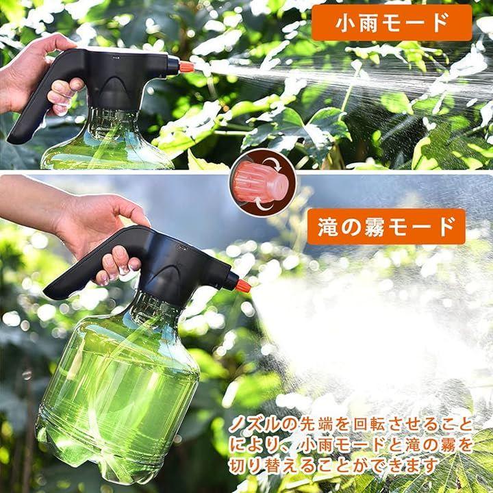 加圧しなくても、ボタン一つを押すだけで細かい霧が滝の霧できるので、指が疲れず操作らくらく。ノズルの先端を回転させることにより、小雨モードと滝の霧を切り替えることができます。
