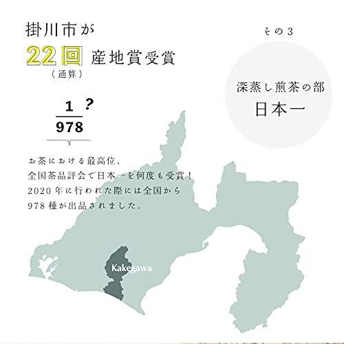 深蒸し製法。賞! 掛川産掛川茶100%。 新芽の若々しい香りが特徴です。おいしくて安心・安全なこだわりなお茶を、ていねいに作り続けています。【保存方法】未開封の場合は低温(冷凍庫など)にて保存してください。 開封した場合は、缶やチャック付の袋などの容器に移し、直射日光の当たらない冷暗所にて保管してください。 ※開封した場合は、冷蔵庫等に入れないで下さい。賞味期限:1年 原材料名:緑茶(静岡県掛川産)【免責事項】メーカーによる商品リニューアルに伴いパッケージ(内容量も含む)変更が行われた場合、新パッケージでお届け致します事ご了承願います。