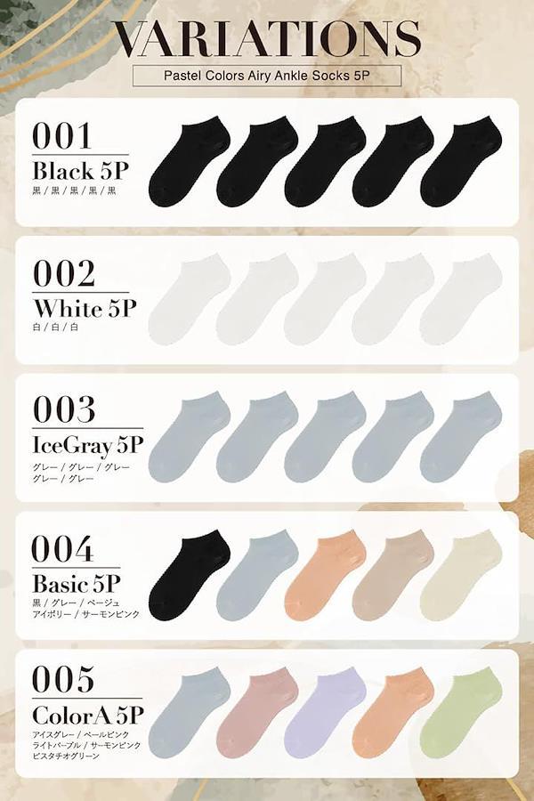 「色味にこだわったパステルカラーの5足セット」 セット内容は、全9色からお任せのセットとなります。