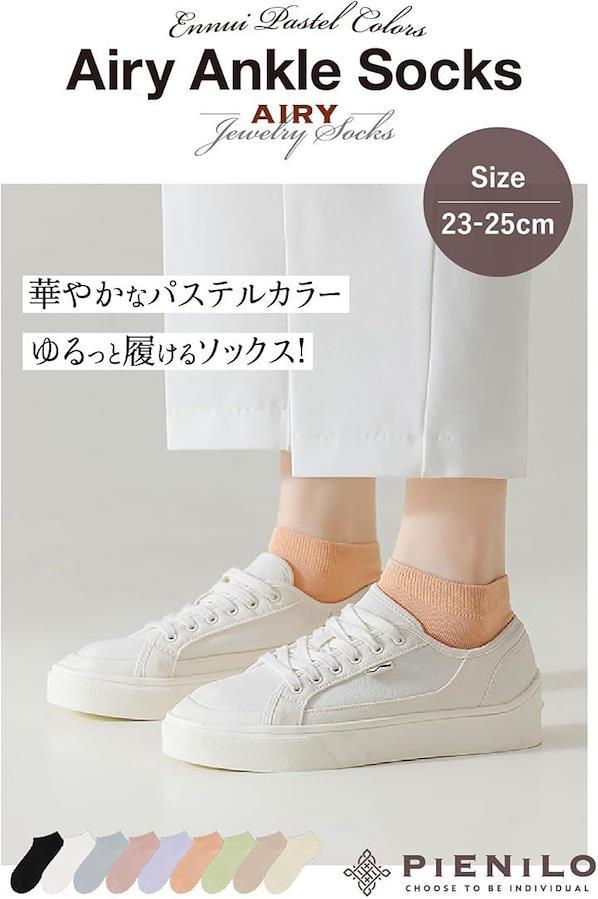 黒色、白色、アイボリー、アイスグレー、ベージュ、サーモンピンク、ピスタチオグリーン、ペールピンク、ライトパープルの淡い色味のカラーで、足元が華やかになります。