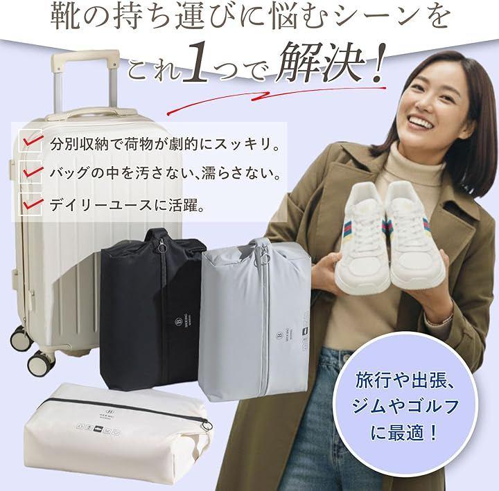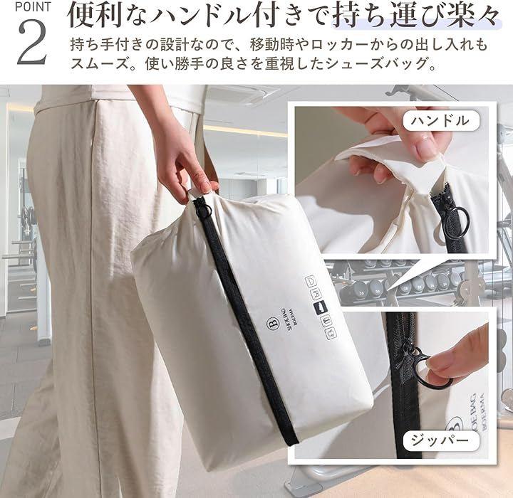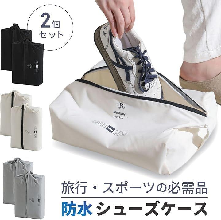 「仕様」 サイズ:約32x22x10cm 素材:T400生地+TPU防水膜 カラー:ホワイト/ブラック/グレー セット内容:シューズケースx2 用途:靴収納、旅行・出張・ジム・ゴルフ用 *モニター環境により、実際の色味と異なって見える場合があります。
