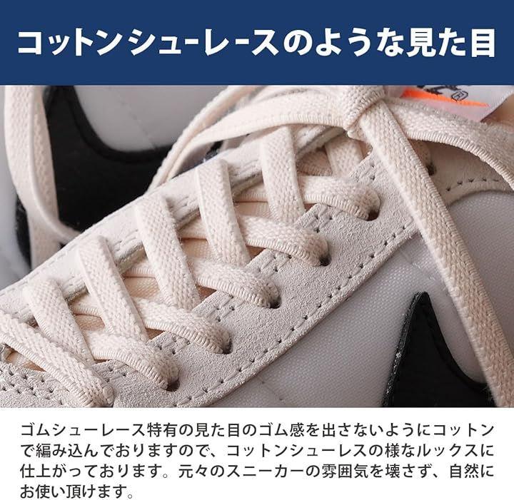 「見た目はそのまま」 表面はコットン素材で、通常のシューレースと変わらないナチュラルな印象。
